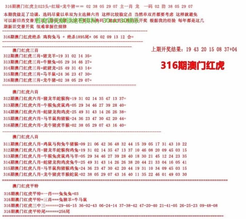 | 316期:⑨码 | 43.31.09.33.24.36.08.20.30 | 马24中 |