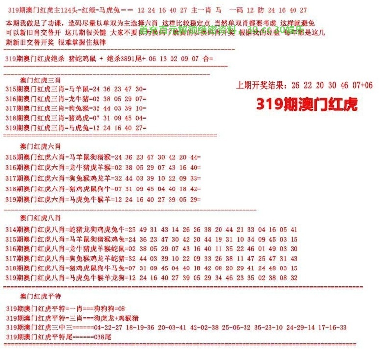 | 319期:六肖 | 鸡狗猴猪蛇牛 | 鸡45中 |